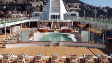 Deck 12 is devoted to sports with golf cages, shuffleboard, paddle tennis and a full-circle jogging track. One flight down, the teak pool deck is one of the most expansive at sea, includes a large heated pool, two whirlpools, table tennis, and a Pool Bar and Grill |