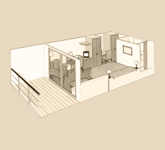 Suites have private balconies, sitting areas and two double wardrobes