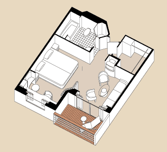 320-sq.-ft. suites with 50-sq.-ft. balconies |