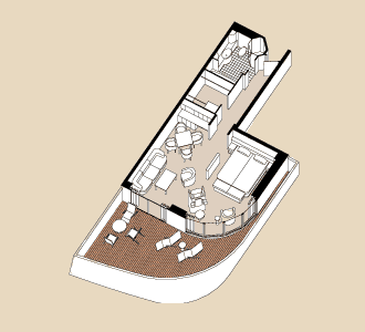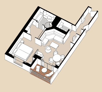 approximately 495-sq.-ft. suites with 50-sq.-ft.
